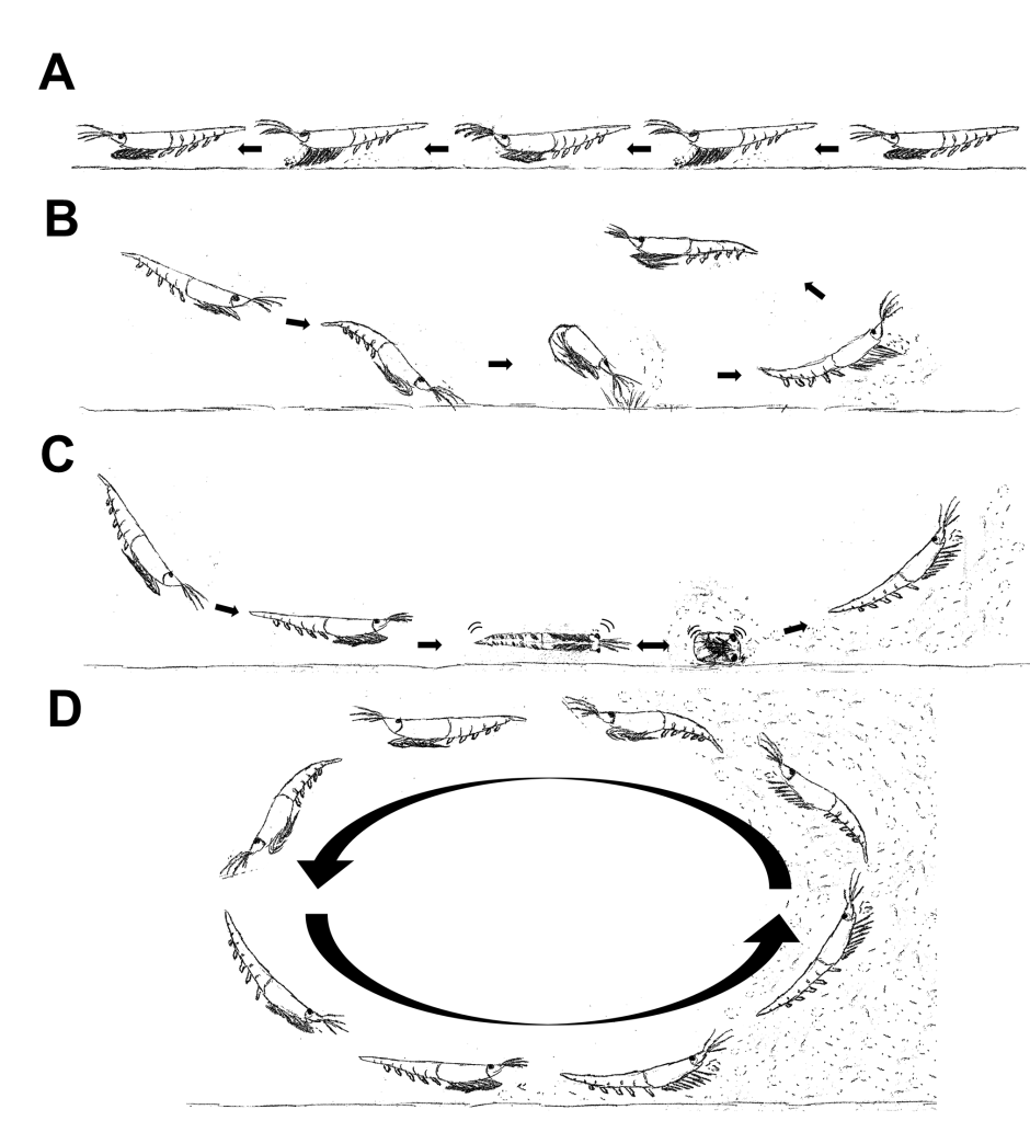 Additionally, the idea of individual krill movement behaviors changing with aggregation density adds to the growing body of literature and observations about organisms in groups. It is also one of the few papers which addresses how the aggregations influence individual behaviors rather than how individuals can influence aggregations.